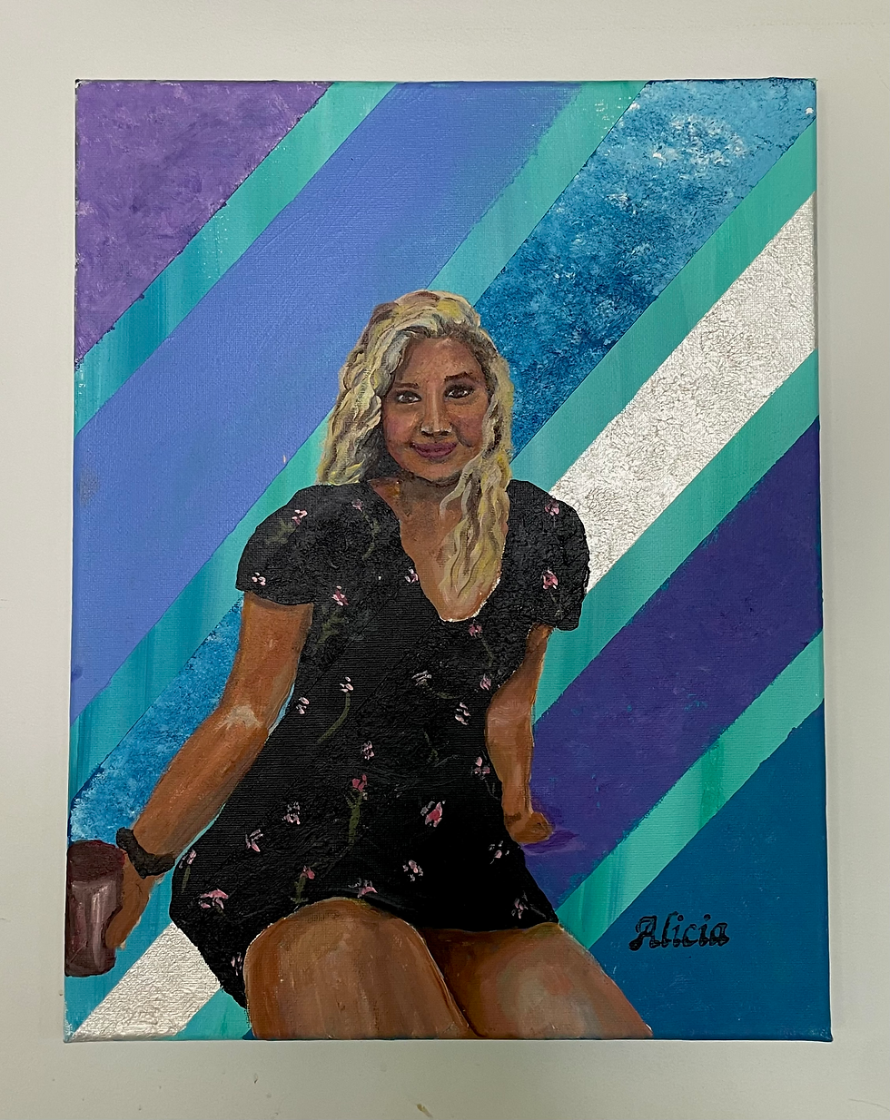 Description: My mom picked out her favorite photo of me. I had her pick some colors and paint and abstract background to be apart of this process. Without my parents, I would not have made it through this experience.